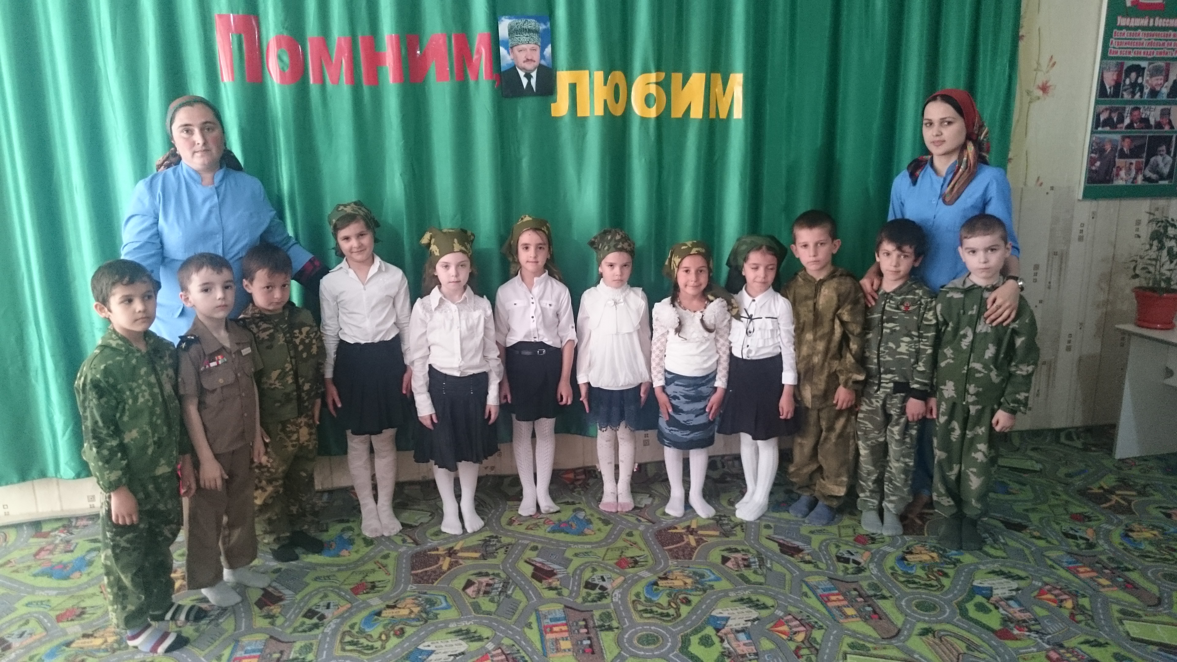 10.05.201610 мая - День памяти и скорби народов Чеченской Республики - утвержден указом Главы ЧР Рамзана Кадырова от 11 апреля 2011 года. Ежегодно в этот день в республике проходят масштабные акции и мероприятия, посвященные скорбным датам в истории чеченского народа. В МБДОУ №1 "Ангелочки" провели утренник посвященный "Дню памяти и скорби". Проведена работа по разучиванию гимна ЧР и стихотворений, посвященных первому президенту ЧР А-Х. Кадырову.