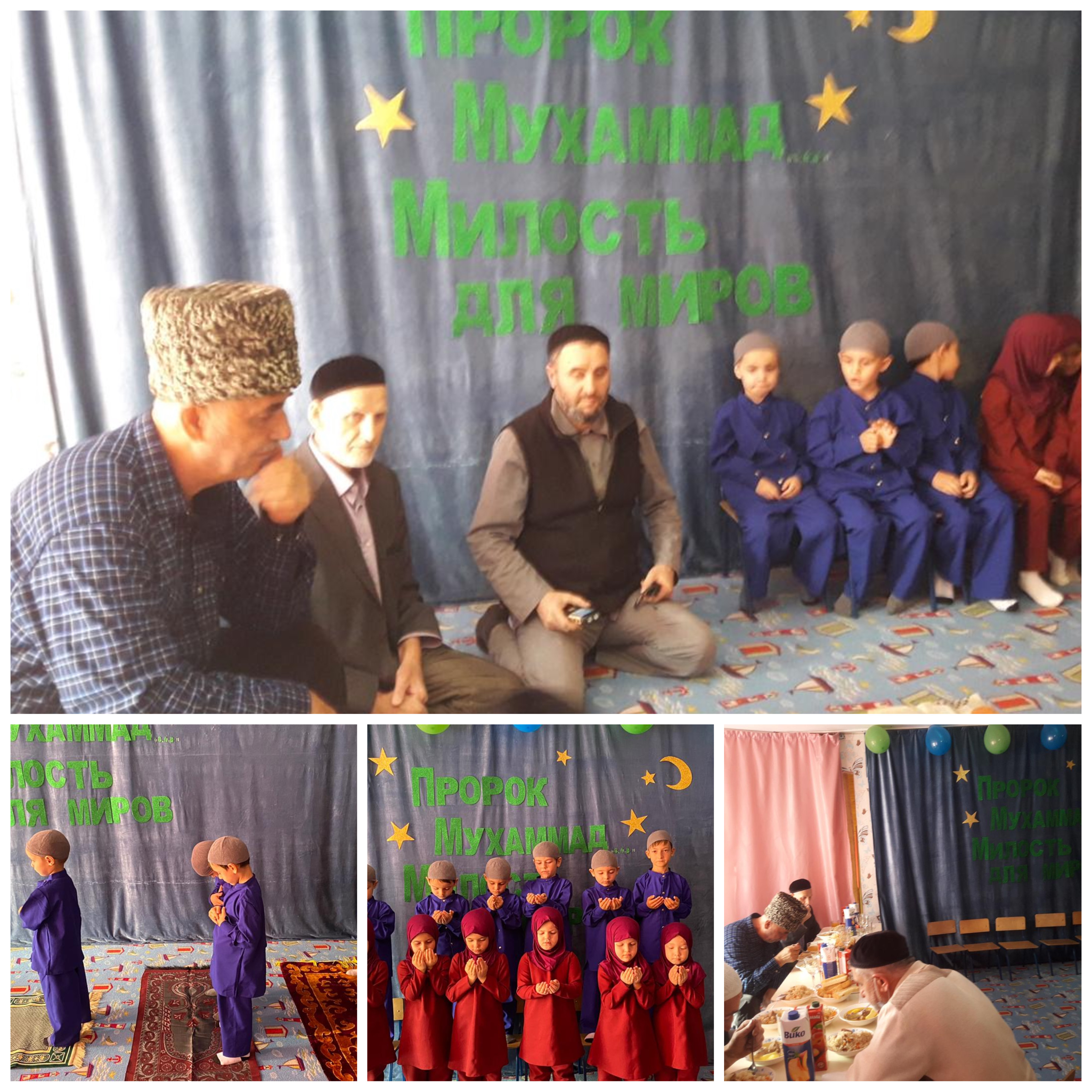 В честь этого праздника в детском саду №1 "Ангелочки" прочитали благочестивый Мовлид на котором были приглашены: Саиев Магомед, Закаев Харон, Эльбиев Имран, Ахмедов Ражап. Они рассказали о величие месяца, что месяц Раббиуль авваль считается одним из особых месяцев Исламского календаря, потому что именно в этот месяц родился наш Пророк Мухаммад (мир ему и благословение).
