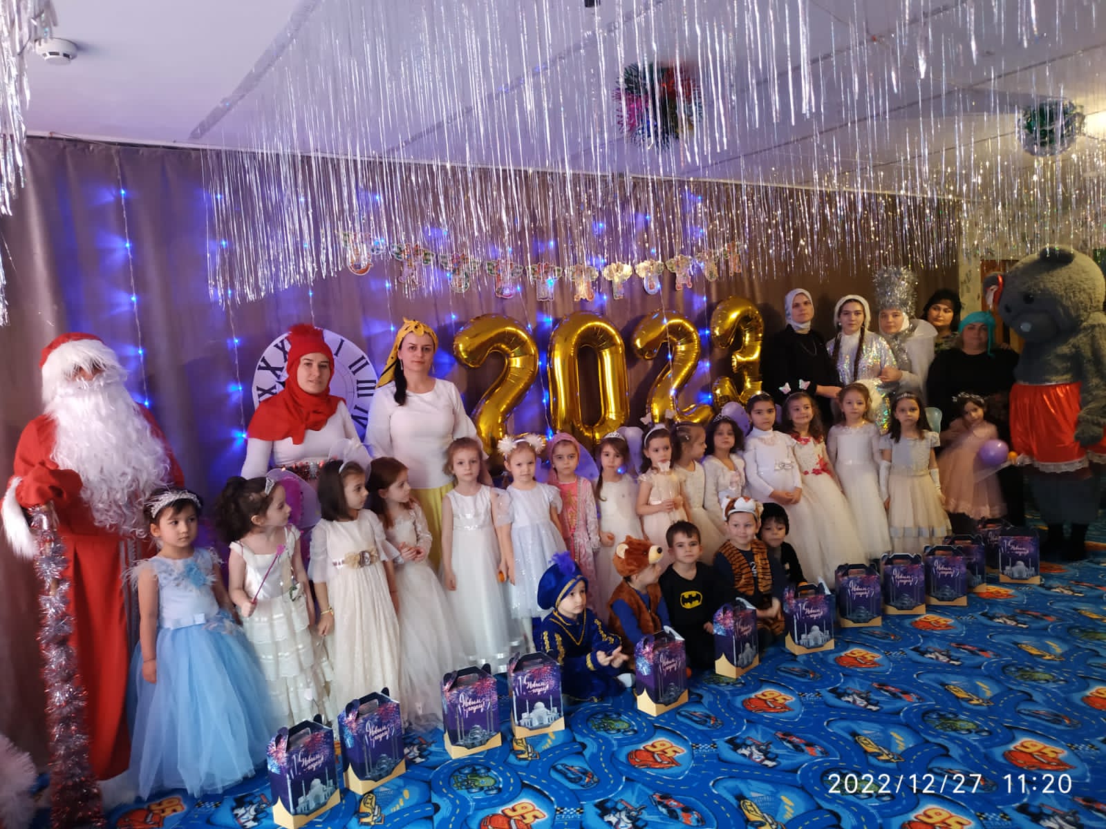 С 26-27.12.2022 г. проводились новогодние утренники под руководством старшего воспитателя Кагировой Х.М., музыкального руководителя Байтимаевой П.У. и воспитателей групп